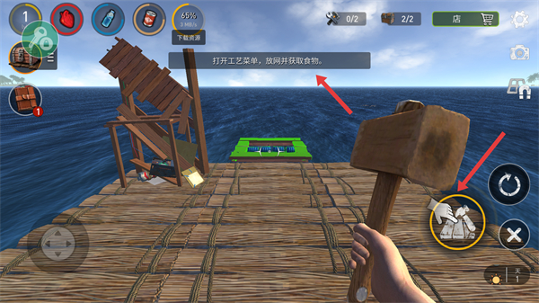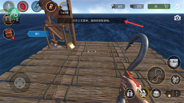 1、打開工藝菜單可放網獲取食物通過工藝菜單制作工具和設備,提升生存能力制作捕魚網等工具可保障食物來源。
