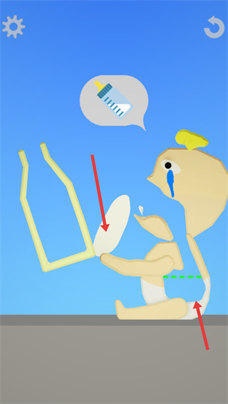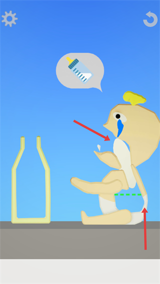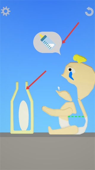 3、完成奶瓶組裝后將奶瓶給嬰兒滿足其需求,使其停止哭泣推進游戲進程每一步操作都要準確確保任務完成。