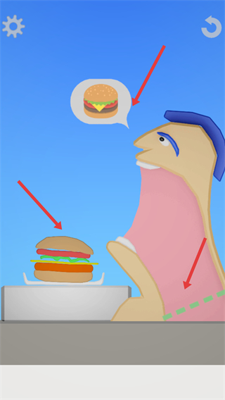 4、面對不同角色的需求如需要漢堡,需根據提示準備漢堡組裝漢堡的部件滿足角色的飲食需求推進游戲。