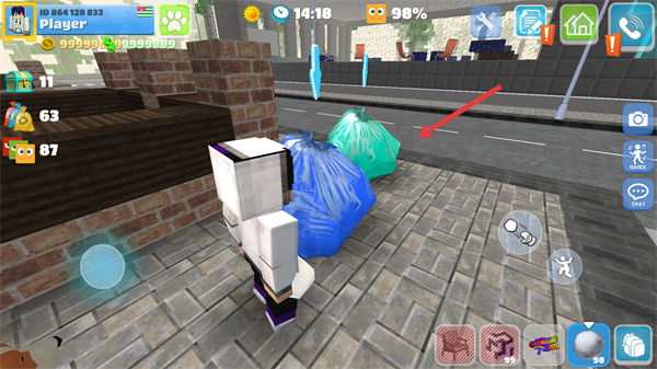 2、遇到垃圾袋等物品可進行互動處理這些物品可獲得資源或完成任務,探索場景時要關注此類可互動的元素推進游戲進程。