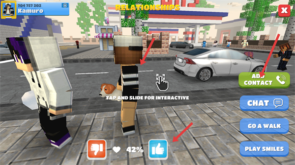 3、與其他角色互動時可添加聯系人、聊天、一起散步等,通過互動提升關系還可進行點贊等操作豐富社交體驗。