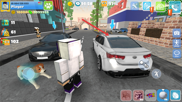 1、在場景中可自由移動探索留意各類建筑和互動元素,如寵物商店可前往探索移動時可收集資源或觸發互動豐富游戲體驗。