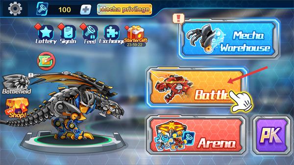 1、點擊右側的Battle按鈕可進入戰斗模式,開啟機甲對戰挑戰這是游戲的核心玩法入口之一。