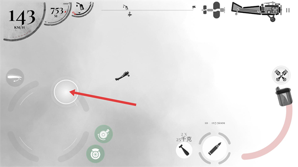 3、操控中央方向輪盤調整飛機姿態,同時收集場景中的零件道具,提升飛行過程中的資源積累。