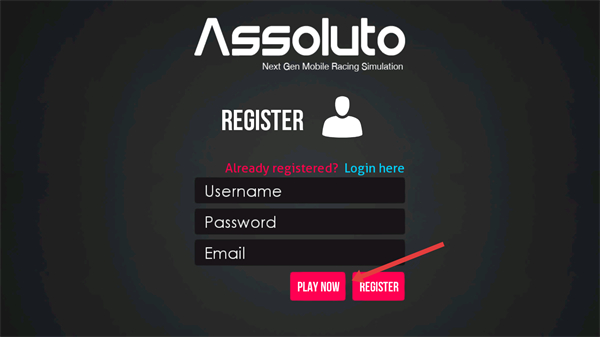 1、點擊REGISTER按鈕可進行注冊,若已注冊可點Loginhere登錄完成注冊或登錄后即可進入游戲。