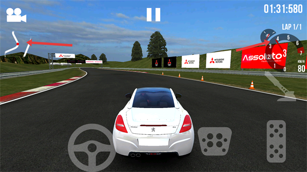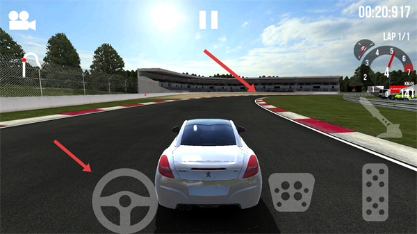 3、遇到彎道時操作左下角的方向盤按鈕控制賽車轉向,確保賽車平穩過彎避免偏離賽道。
