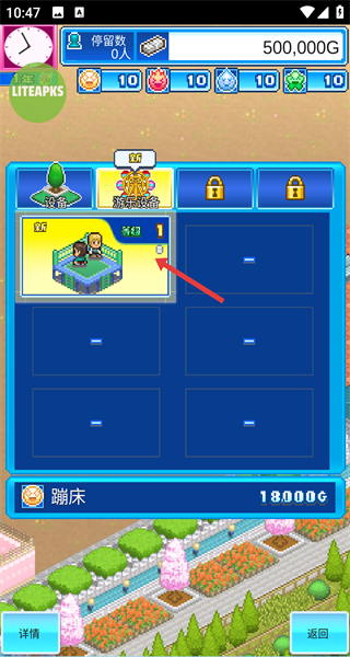 3、選擇好游樂設施后,將其放置在游樂園的空地上,通過合理布局來吸引游客,提升游樂園的收益。