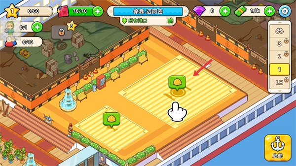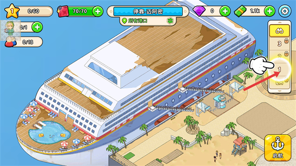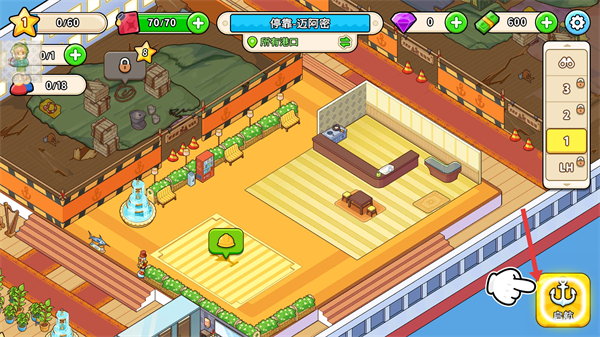 1、點擊右側的樓層1可進入該樓層,開始對樓層進行建設和管理推進游輪的經營進程。