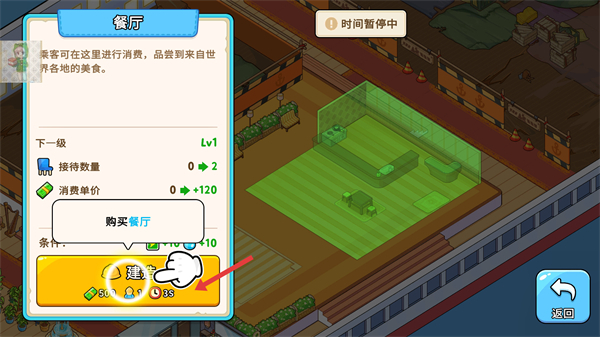 3、在建筑界面點擊建造按鈕,消耗資金和時間可建造餐廳為乘客提供餐飲服務增加游輪的收益來源。