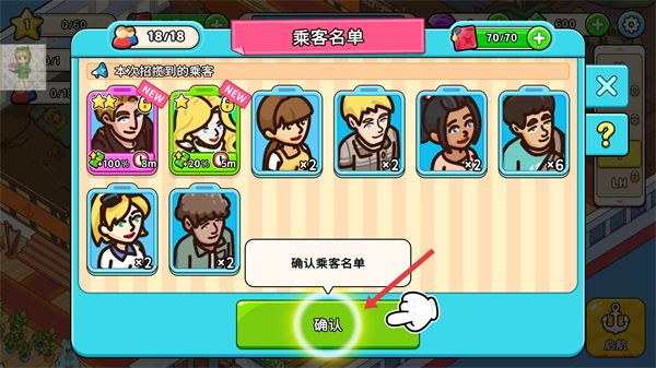 2、點擊確認按鈕可確認乘客名單,完成乘客招攬流程讓乘客登上游輪開啟服務進程。
