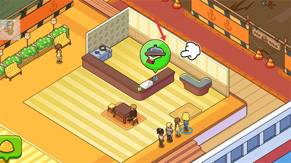 3、餐廳內的綠色標識可觸發餐廳的經營操作,如接收訂單等開始為乘客提供餐飲服務獲取收益。