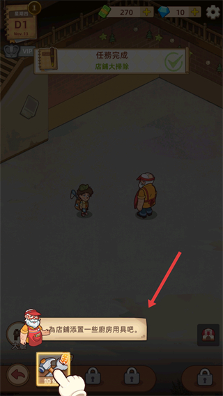 1、點擊房屋上的粉刷按鈕,可粉刷房屋,提升店鋪的外觀,為后續經營創造良好環境。