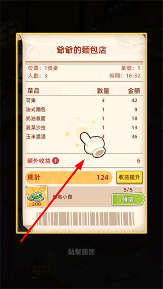 1、接待第一桌顧客,完成點餐準備,開啟麵包店的經營流程,為后續出餐做準備。