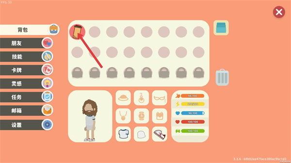 3、打開背包界面,查看已獲得的物品如奶茶,同時可通過右側欄更換服飾、裝備道具,提升角色外觀或屬性。