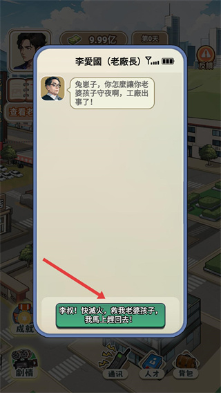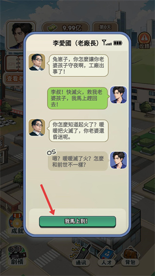 3、看到老廠長的緊急消息后,選擇對應的回復選項推進劇情,這類對話選擇會影響后續情節發展,需根據提示快速回應,確保劇情流程能順利銜接,不中斷節奏。