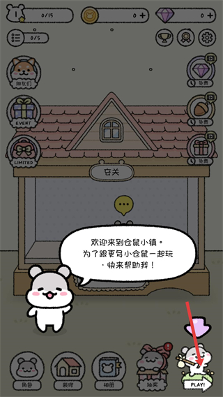 1、在主界面點擊PLAY進入關卡,接受幫助羅勒經營小倉鼠的任務,開啟關卡挑戰。