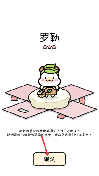 4、完成光卡后獲得角色羅勒,點擊確認完成角色解鎖,進入倉鼠小鎮主界面。