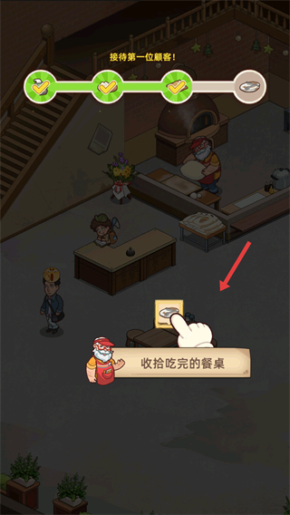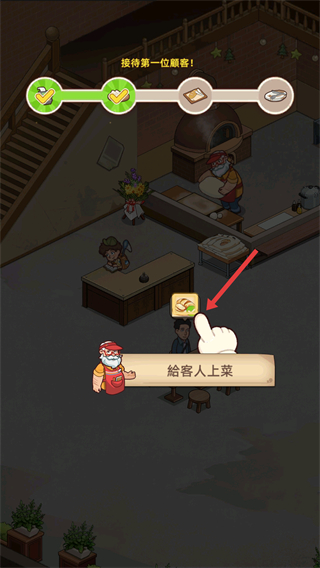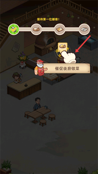 1、接待第一位顧客時,點擊面包圖標幫助客人點單,開啟服務流程,這是經營餐廳的第一步,需準確響應顧客需求。