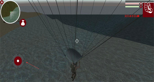 3、在跳傘過程中使用方向鍵控制降落傘的方向,調整降落位置,以便角色安全降落到地面。