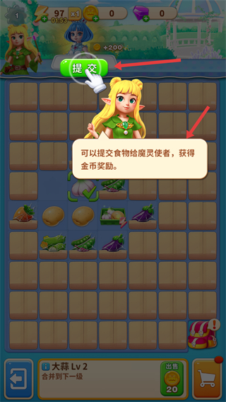 4、提交食物給魔靈使者,可獲得金幣獎勵,積累金幣用于發展城堡,提升整體經營進度。