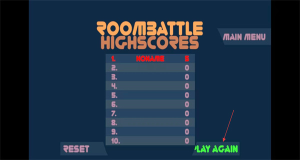 4、在高分榜界面點擊PLAY AGAIN,可再次進入游戲,繼續挑戰,爭取在戰斗中取得更好成績,刷新高分記錄。