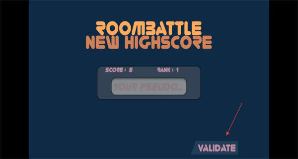 3、戰斗結束后,若獲得新高分,在新高分界面輸入昵稱,然后點擊VALIDATE,確認記錄下本次的高分成績。