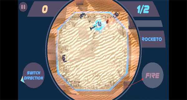 2、進入游戲戰斗場景后,點擊FIRE按鈕射擊敵人,時刻關注場景內敵人的位置,持續射擊以消滅敵人并積累分數。
