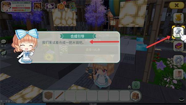 3、點擊合成按鈕,根據合成引導嘗試合成木鎬,完成合成可獲得銀幣和禮券獎勵,提升資源積累。