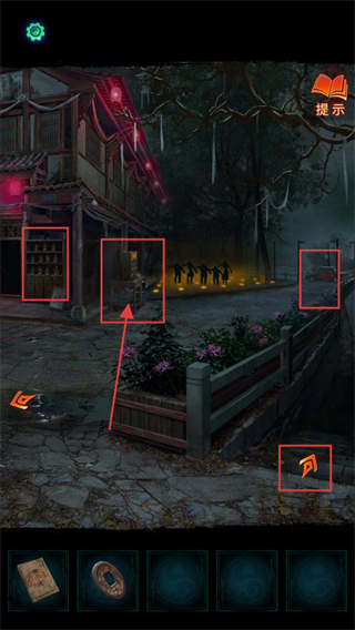 1、在場景中探索不同區域,點擊可互動的地點,獲取道具或觸發劇情,通過探索收集線索,推進游戲解謎進程。