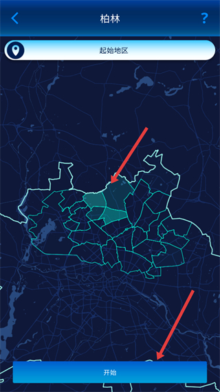 1、選擇柏林起始地區,點擊開始進入游戲,開啟在柏林的事件處理和小隊調度之旅。