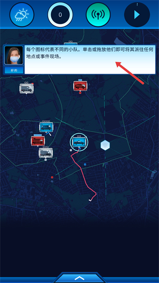 3、了解每個圖標代表的不同小隊,通過單擊或拖放將小隊派往地點或事件現場,高效調度資源處理事件。