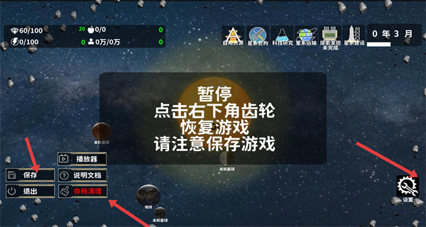 3、遇暫停提示點保存按鈕存進度退出離開游戲以及存儲清理刪數據,通過功能保障游戲進度管理存儲。
