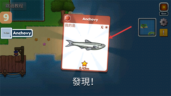 3、成功釣到Anchovy魚后,會獲得該魚的卡片,記錄魚的信息,繼續探索不同區域,釣取更多種類的魚,豐富魚的圖鑒。