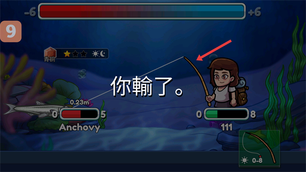 2、了解釣魚規則,魚會向左拉,需讓指示器到達右側邊緣才能獲勝,若到達左側邊緣則失敗,據此策略操控釣魚進度條。