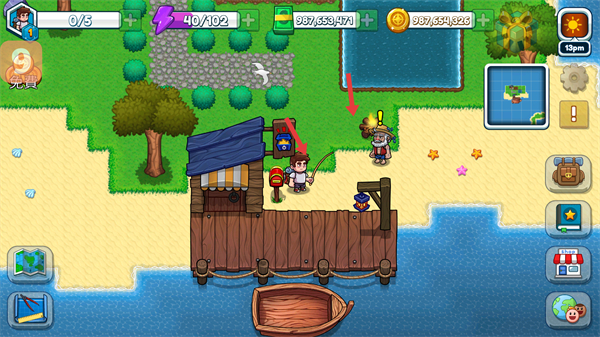 1、在海邊碼頭場景中,與NPC互動,接受釣魚任務,準備開啟釣魚挑戰,積累資源,推進游戲進程。