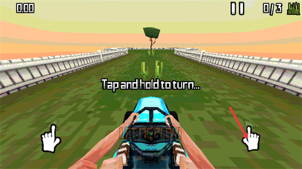 2、游戲中按提示Tapandholdtoturn操作,點擊并按住屏幕左右側來控制車輛轉向,適配賽道地形。