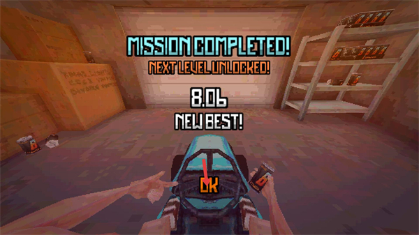 4、完成關卡后會顯示MISSIONCOMPLETED,解鎖下一關并刷新NEWBEST記錄,點擊OK確認結算。