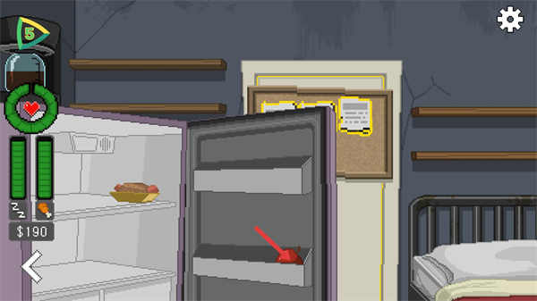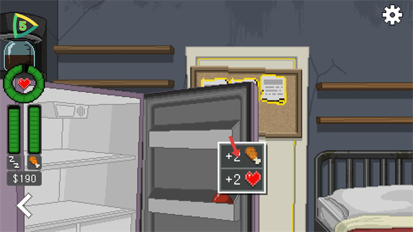 2、回到生活場景后,點擊冰箱上的物品可打開冰箱,該系統用于管理角色的食物與狀態資源,保障觀察的持續進行。