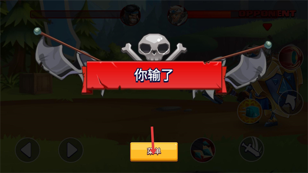 3、戰斗失敗后會顯示你輸了提示,點擊菜單可返回關卡選擇界面,調整策略后重新挑戰該關卡。