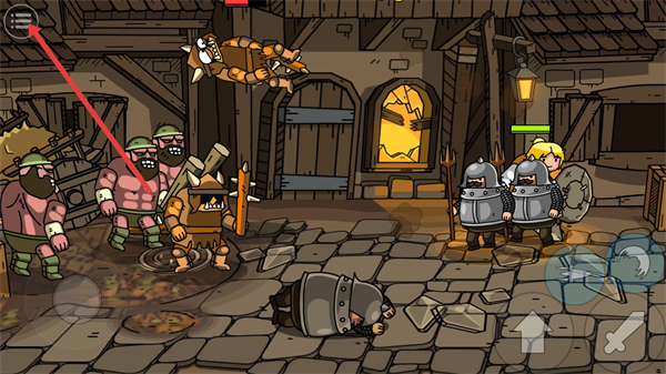 2、根據箭頭指示點擊三條桿,進入設置界面,升級技能,同時借助場景地形拉開與敵人的距離,減少受傷。