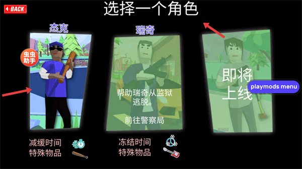 2、在角色選擇界面,選擇【杰克】等角色,不同角色有不同特殊物品和任務,選擇后即可進入游戲。