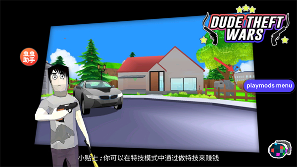 3、游戲中可在特技模式做特技賺錢,利用場景中的車輛,建筑等元素,完成特技獲取收益。