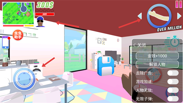 4、在游戲場景里,通過左側搖桿移動角色,界面還有金錢,人物等信息,可利用功能菜單獲取金錢等。