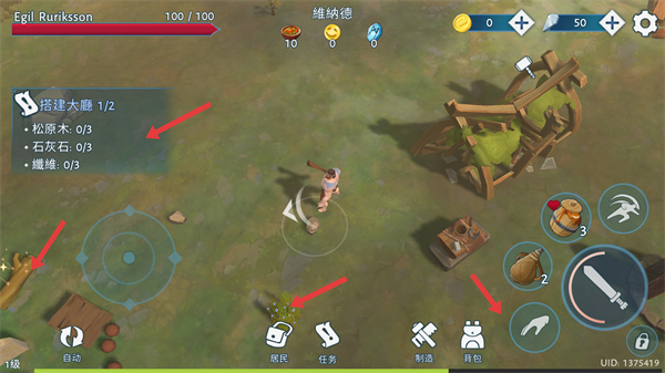 3、開啟搭建大廳任務后在地圖中收集松原木、石灰石、纖維,確保每種材料收集足夠數量,滿足建造需求。