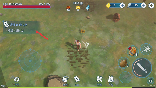 4、完成材料收集后進行搭建大廳任務,開展搭建大廳的操作,完成大廳建造,推進游戲進程。