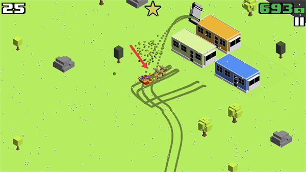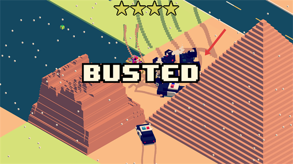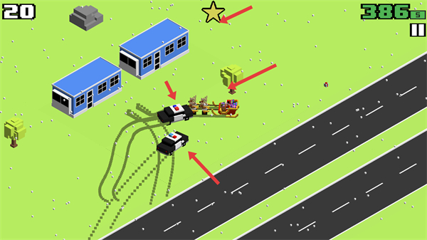 2、在被警車追捕時,可利用地形和樹木進行躲避,同時注意收集星星道具,提升游戲評分。