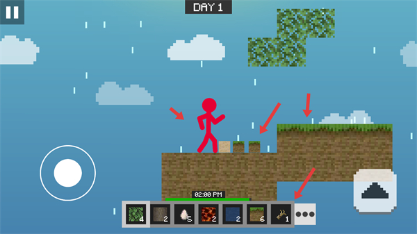 2、在空島上移動時利用收集的資源搭建平臺,拓展活動區域,同時注意天氣變化,合理安排生存操作。
