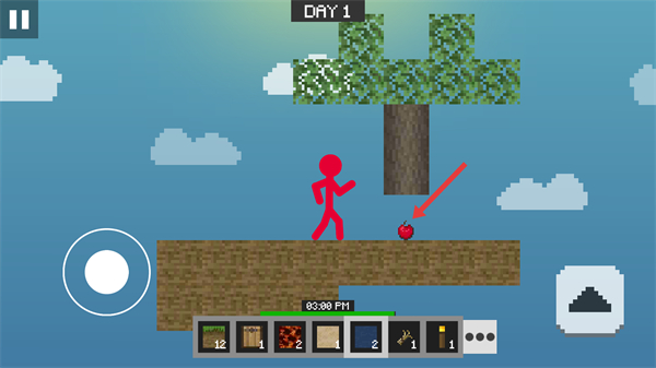 3、砍伐樹木獲取木材等資源,同時留意地面的可收集物品,如紅色果實,收集后可用于生存或制作。