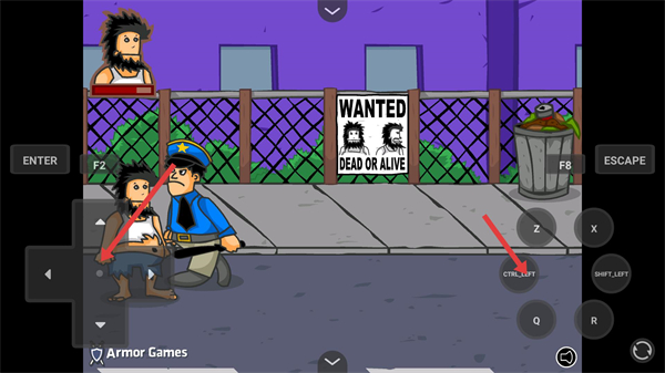 2、關卡初始會遭遇警察攔截,需按CTRLLEFT等按鍵觸發攻擊動作,擺脫攔截以推進流程,同時注意場景互動元素。
