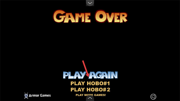 4、出現GAMEOVER界面時,點擊PLAYAG可重新開始游戲,也可選擇游玩同系列。